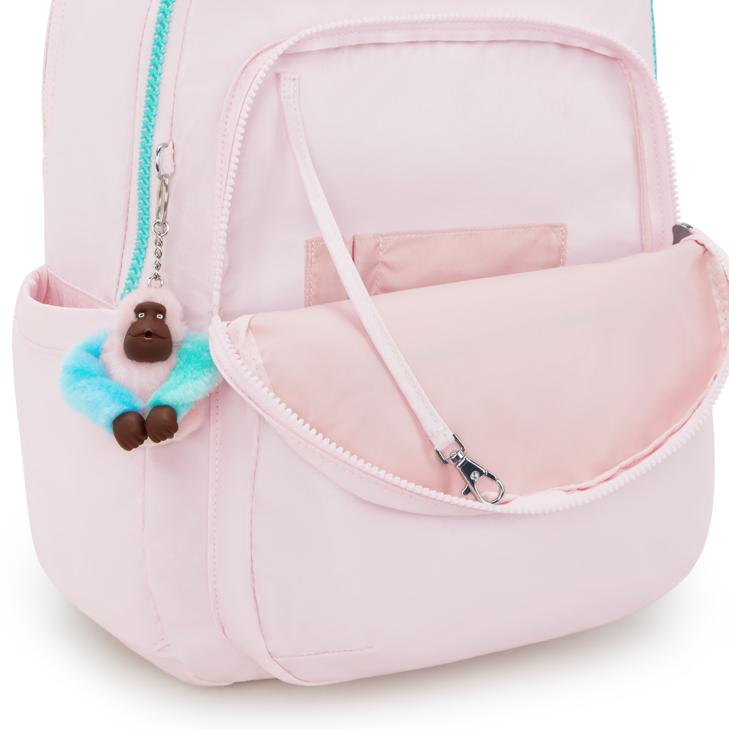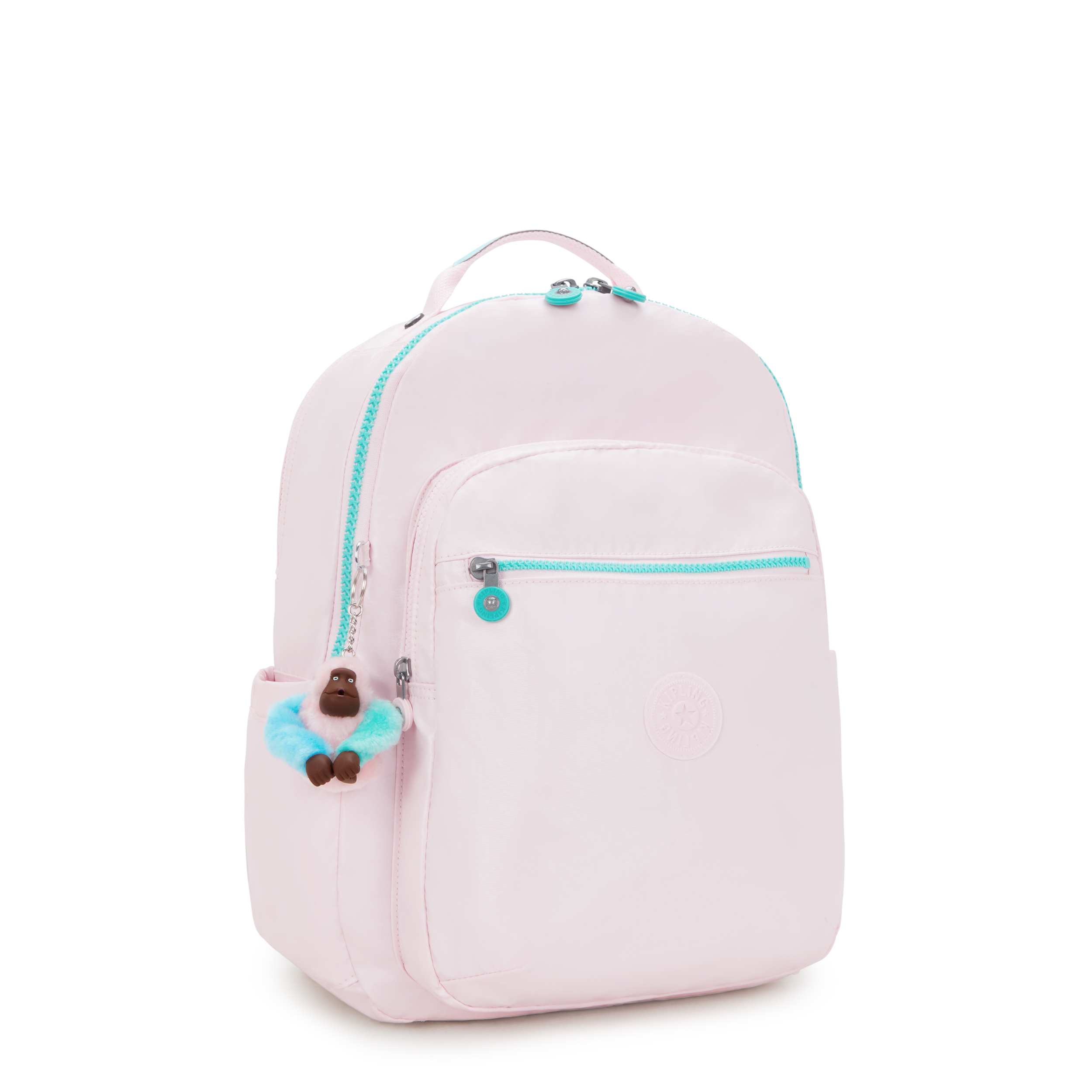 The Seoul College Extra has a roomy interior, plenty of inside, outside and side pockets, convenient key leash and a separate 15-inch laptop compartment to keep your tech safe. For added comfort and stability, it now includes an optional chest strap. There?s even a handy key leash and a fun-loving, Kipling monkey keychain too!